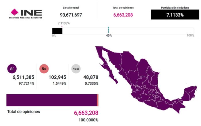 INE da a conocer cómputo final de la consulta popular; votaron 6.6 millones, 7.11% del padrón