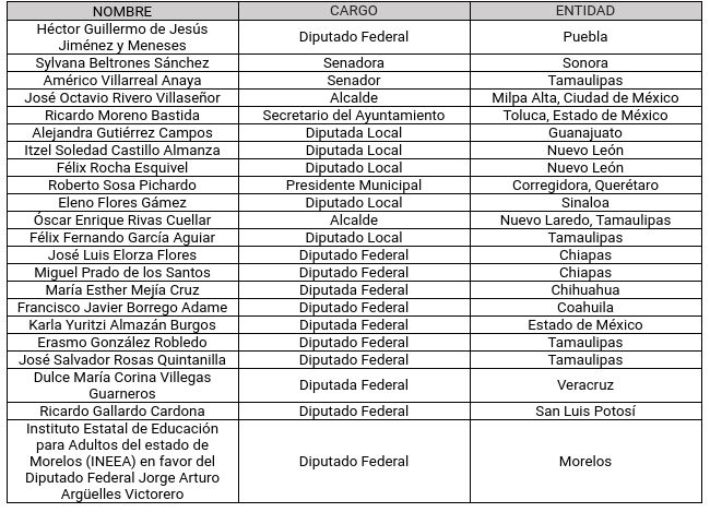 Estos son los 22 servidores públicos mencionados: