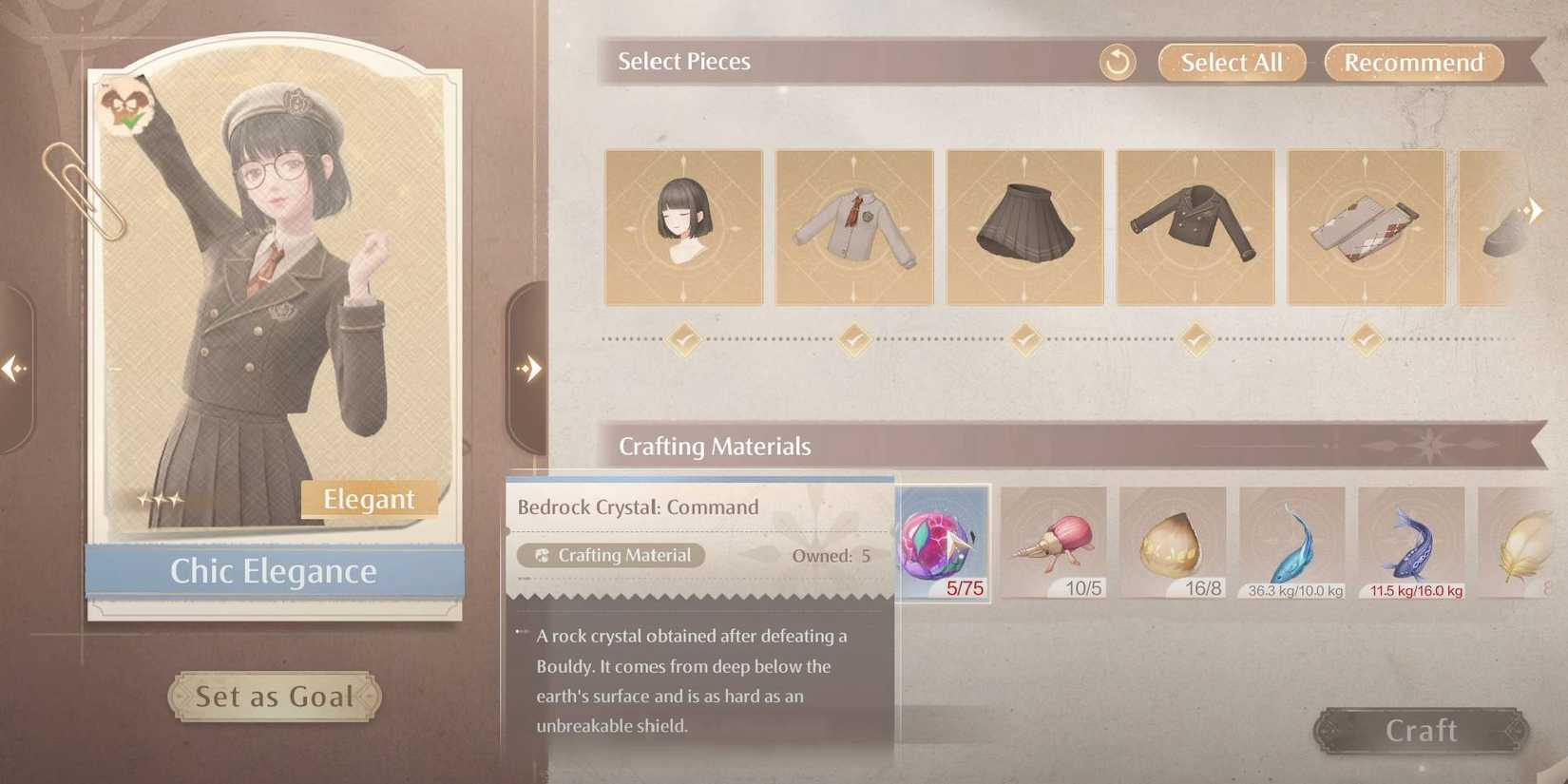 Incluso cuando reúnes todos los bocetos necesarios para construir el conjunto Chic Elegance, aún tienes que crear el artículo en sí. Tú debe recolectar muchos recursos diferentes para construir Chic Elegance, que abarca desde objetos comunes hasta materiales mucho más raros. Si bien puedes sustituir la Energía Vital en Infinito Nikki Para algunos requisitos, no puedes evitar por completo el trabajo que será necesario para reunir todo lo que necesitas.