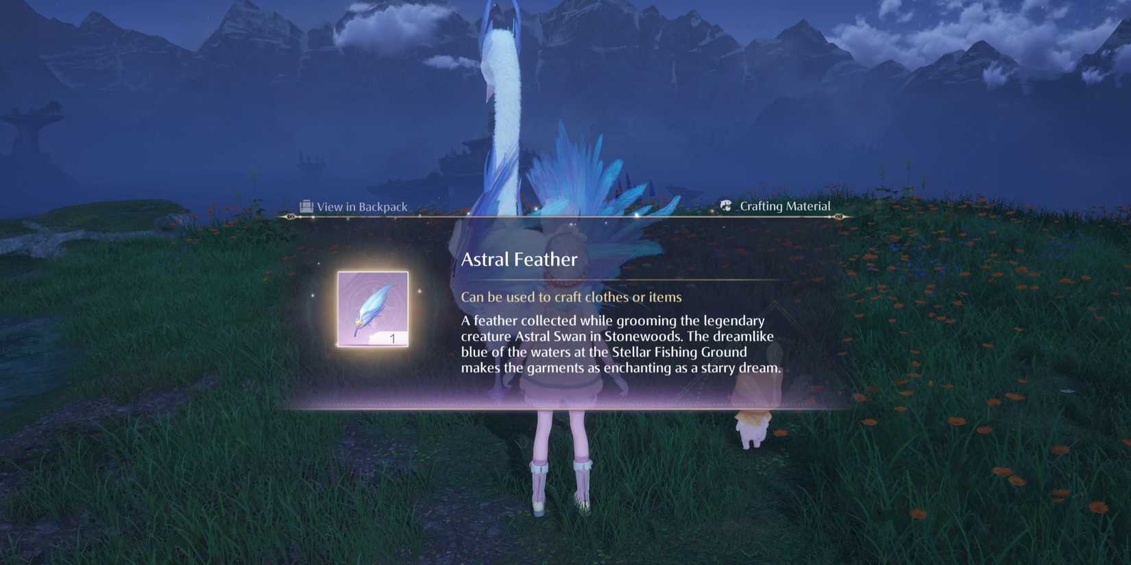 Sin embargo, vale la pena encontrar a la criatura. ya que el Cisne Astral es uno de los hallazgos más maravillosos del juego. Si bien requiere mucho más trabajo que cuando los jugadores aprenden a crear los aretes de polvo de estrellas de la memoria, estarás feliz de haber dedicado tiempo ya que tendrás acceso a las plumas astrales con regularidad. Luego podrás crear ciertos atuendos especiales que no se pueden hacer con ellos.