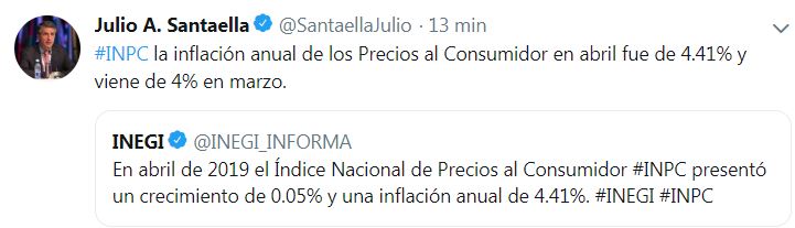 En el mismo mes de 2018 las cifras correspondientes fueron de -1.03 y de 6.20 por ciento, en ese orden.
