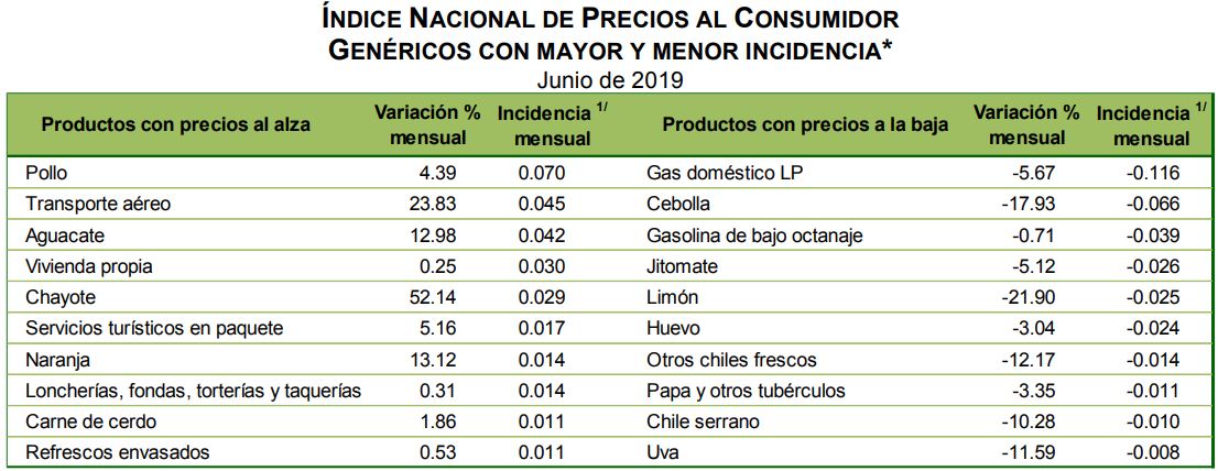 De acuerdo con el organismo, los productos y servicios que tuvieron el mayor incremento en precios fueron el chayote, el transporte aéreo, la naranja y el aguacate.