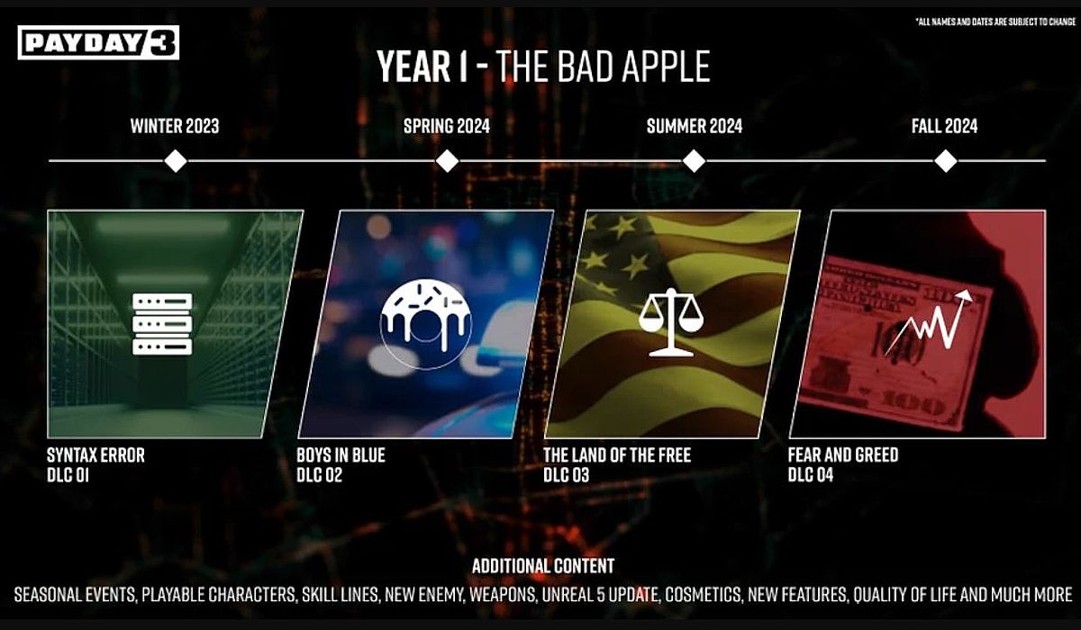 “/> Toda la hoja de ruta del Año Uno para Día de pago 3 viene con el titulo “La manzana podrida” y consta de los cuatro paquetes DLC, comenzando con Error de sintaxis. Aparte de proporcionar nombres y plazos generales a tener en cuenta para los próximos DLC, no se ha dicho mucho más sobre lo que incluirán estos lanzamientos importantes.