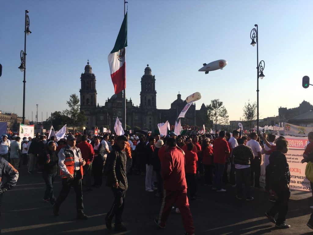 En tanto, cientos de personas se concentran en la Plaza de la Constitución a la altura de avenida 20 de Noviembre, para encabezar la conmemoración de este 1 de mayo.