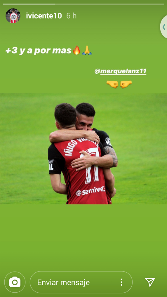 Vicente quiso demostrar su alegría con una Storie en Instagram por la vuelta y tras el triunfo, junto a su ‘socio’ Merquelanz.