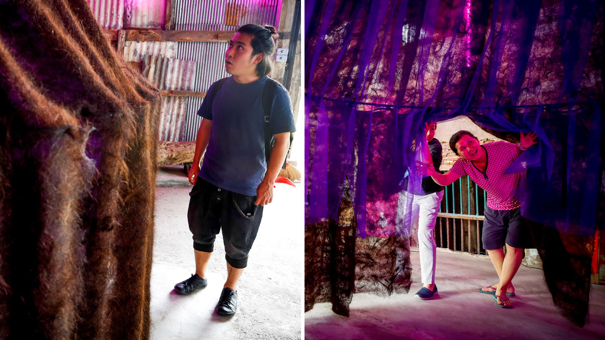 La creadora española Déborah López y el estadounidense Hadin Charbel exhiben un pabellón realizado con pelo humano para desafiar la concepción tradicional de los tejidos en la Semana del Diseño de Bangkok.