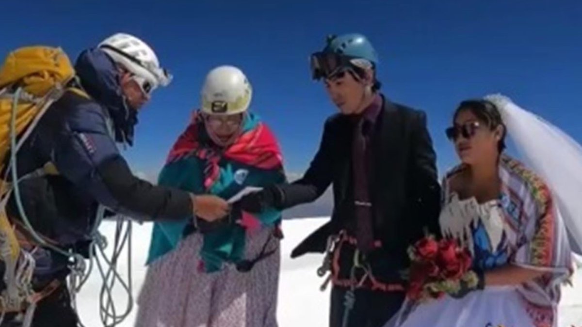 LA PAZ, Bolivia – Los bolivianos Jhonny Pacheco y Heydi Paco decidieron darse el “sí” en un lugar “inolvidable”, en un sitio “más cerca al cielo y cerca de Dios”, y escogieron para realizar su boda al imponente nevado Illimani de La Paz, ubicado a 21,200 pies de altura.