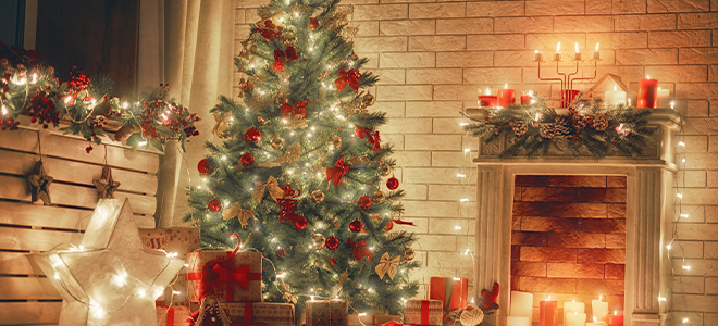 El aspecto nítido y limpio de blanco ¡nunca pasa de moda! Por eso, quizás hayas estado soñando con una Navidad blanca, pero en lugar de afuera, dentro de las paredes de tu hogar. Intente decorar la repisa de la chimenea con velas blancas, adornos de bulbos blancos dispersos, detalles brillantes e incluso algo de nieve falsa para disfrutar de la simplicidad de la decoración blanca durante toda la temporada. Combine esto con luces blancas en su árbol o incluso cree su propio árbol de Navidad flocado para mantener la tendencia en toda su casa.