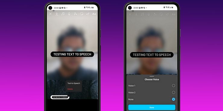 Instagram ahora ha agregado un par de funciones a los carretes: efectos de voz y texto a voz, los cuales son bastante populares en TikTok desde el punto de vista del entretenimiento y la accesibilidad. Comenzando con la conversión de texto a voz, se puede acceder a ella desde la herramienta de texto que aparece cuando los usuarios encienden la cámara Reels. Como sugiere el nombre, la conversión de texto a voz permitirá a los usuarios agregar texto o una leyenda a sus videos que luego se lee en una opción de dos voces. Los pasos son bastante simples: abra la cámara Reels, grabe / cargue un video, toque el Texto herramienta y luego escriba el mensaje. Una vez que el texto está terminado, aparece una burbuja con un ícono de tres puntos en la parte inferior. Al tocar esto, se revela lo nuevoTexto a voz”Que posteriormente pide a los usuarios que elijan entre voz masculina y femenina.