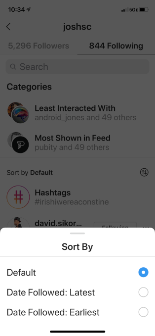 Para acceder a la función, vaya a su perfil, luego “siguiendo”, luego verá las categorías que puede explorar. También puedes ordenar a quién sigues, de más temprano a más reciente y viceversa, en caso de que quieras borrar tus primeras adiciones o asegurarte de que realmente te importan las últimas personas que seguiste.