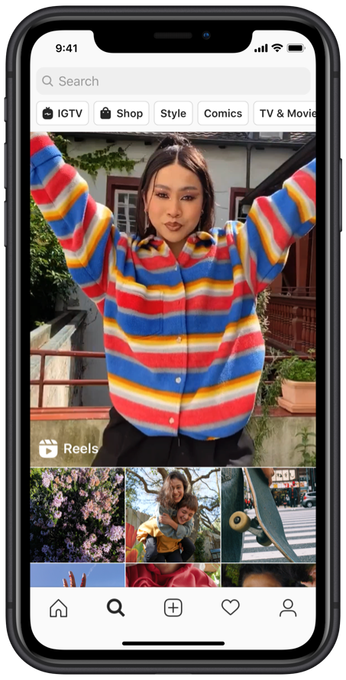 Para ver los carretes de Explore, los usuarios se presentan en un feed vertical personalizado a sus intereses, similar a TikTok. Los carretes “destacados” son los elegidos por Instagram para guiar a los usuarios al contenido original y se etiquetarán en consecuencia.