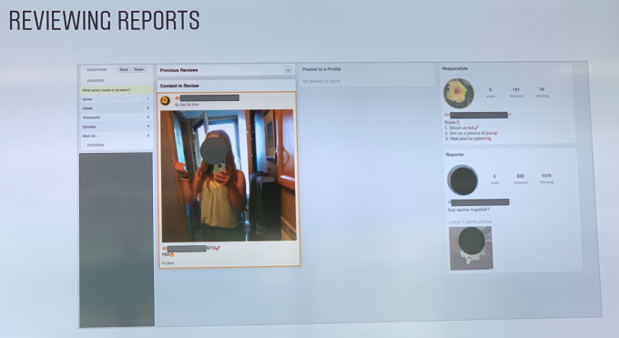 El sistema automatiza la exploración y puntúa todas las publicaciones subidas a Instagram, comparándolas con los clasificadores de contenido prohibido y lo que se denomina "bancos de coincidencia de texto". Estas colecciones de contenido de huellas digitales que ya está prohibido tienen su texto indexado y las palabras extraídas de las imágenes a través del reconocimiento óptico de caracteres para que Instagram pueda encontrar publicaciones con las mismas palabras más adelante. Está trabajando para extender esta tecnología a los videos, y todos los sistemas están siendo entrenados para detectar problemas obvios como amenazas, contactos no deseados e insultos, pero también causan un "miedo a perder" intencionalmente, burlas, vergüenza y traiciones.