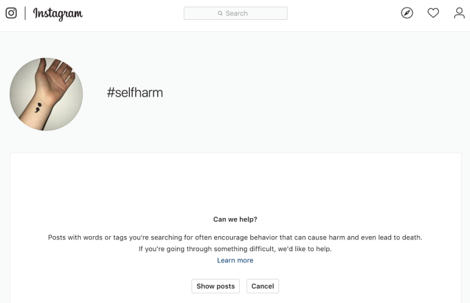 Instagram también comenzará a enterrar imágenes no gráficas sobre autolesiones (por ejemplo, imágenes de cicatrices curadas) para que no aparezcan en búsquedas, hashtags relevantes o en la pestaña de exploración. "No estamos eliminando por completo este tipo de contenido de Instagram, ya que no queremos estigmatizar o aislar a las personas que puedan estar en apuros y publicar contenido relacionado con autolesiones como un grito de ayuda", dijo Mosseri.