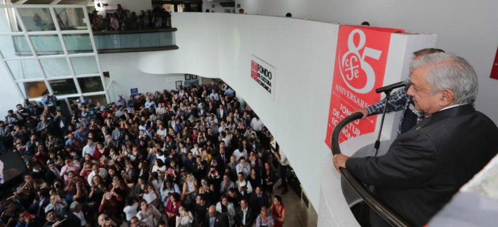 Durante su discurso con motivo del 85 Aniversario del Fondo de Cultura Económica (FCE), subrayó el hecho de que a través de esta institución la lectura esté accesible a la gente, “es una labor extraordinaria, es un distintivo de la Cuarta Transformación de la vida pública del país”.