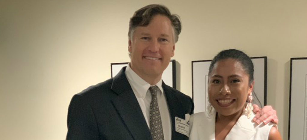 El embajador de Estados Unidos en México, Christopher Landau, coincidió con la actriz Yalitza Aparicio en una plática del Banco Interamericano de Desarrollo en Washington, Estados Unidos.