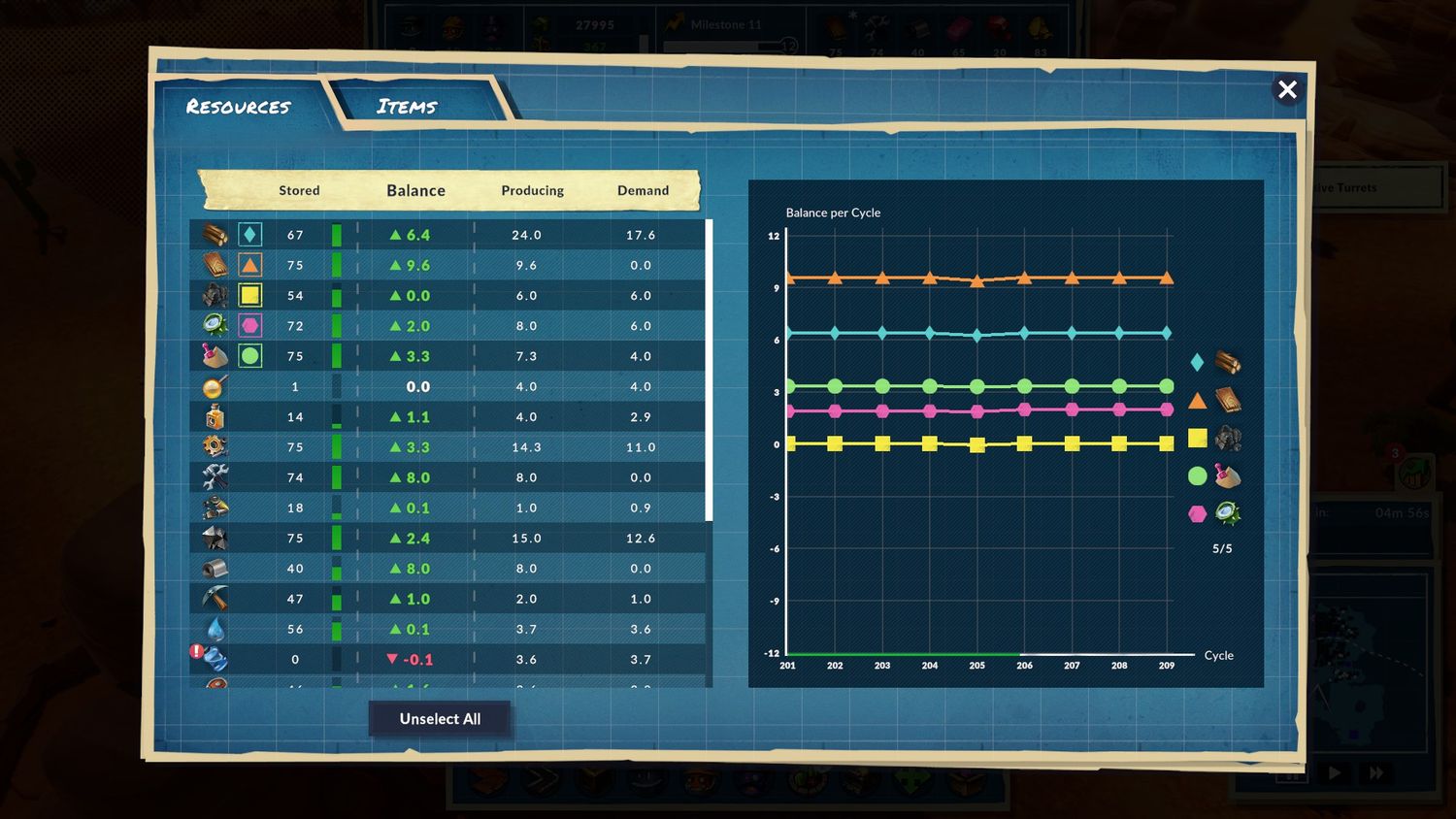 - El juego combina la gestión de ciudades en la superficie y la minería subterránea, con un complejo sistema de cadena de suministro e hitos de progresión basados en la población.