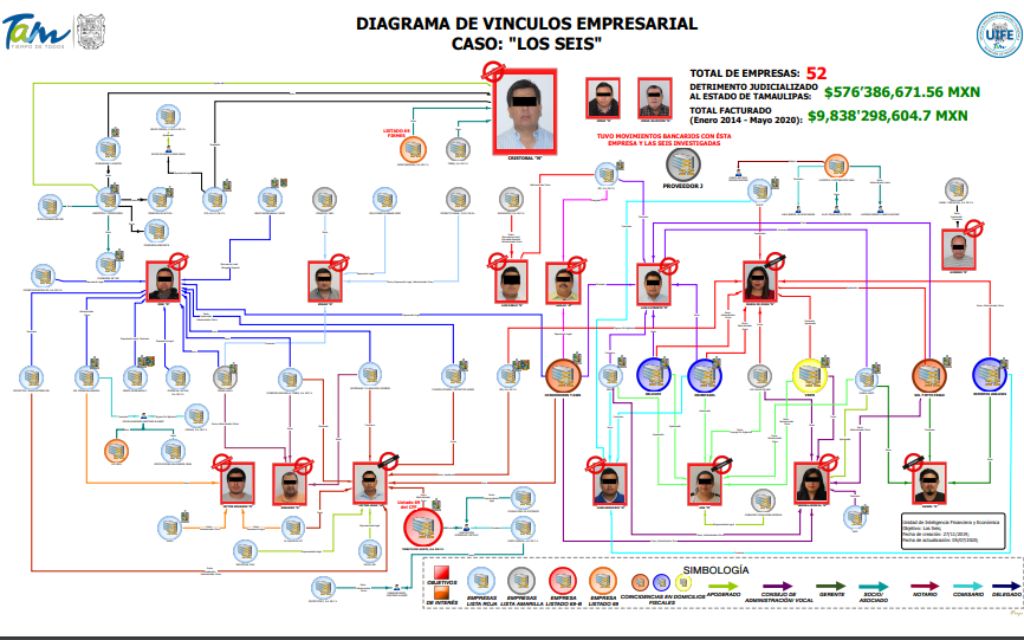 A partir de 2017, la Contraloría y la Auditoría Superior del Estado comenzaron a investigar las finanzas que dejó Torre Cantú. En mayo de 2018, la UIFE recibió información, profundizó, perfiló la estructura del caso llamado “Los Seis” y presentó la denuncia ante el Ministerio Público especializado en delitos fiscales, financieros y patrimoniales en la Fiscalía General de Justicia de Tamaulipas.