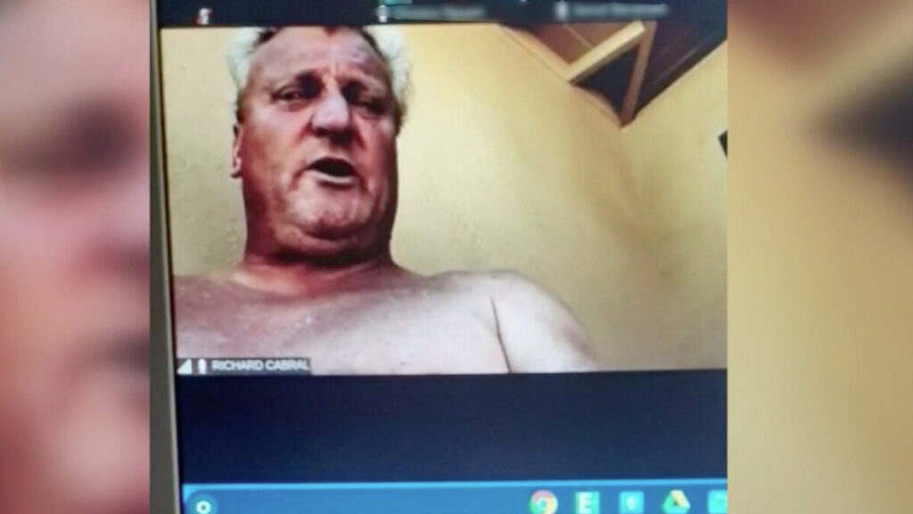 De repente el hombre de 72 años desapareció de la vista de la cámara, y la próxima imagen era un hombre calvo y desnudo, según un testigo conectado a la videollamada.