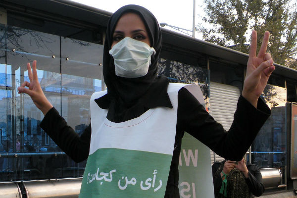 La convocatoria estaba fijada para las cuatro de la tarde. Llegué poco antes de esa hora y me dirigí a la Universidad de Teherán, que se encuentra a unos trescientos metros, para ver cómo se organizaban los estudiantes. Estaban encerrados. Una doble fila de antidisturbios y otra de basiyíes bloqueaba el acceso principal. A través de las rejas, los jóvenes sacaban carteles escritos a mano en los que denunciaban la «dictadura» de Ajmadineyad y la «traición al pueblo» de Jameneí. Varios policías les daban porrazos en las manos para que se alejaran. Las personas que pasaban por la calle saludaban con los dedos en V. Los de adentro respondían con gritos de «¡Alá-ju-ákbar!».