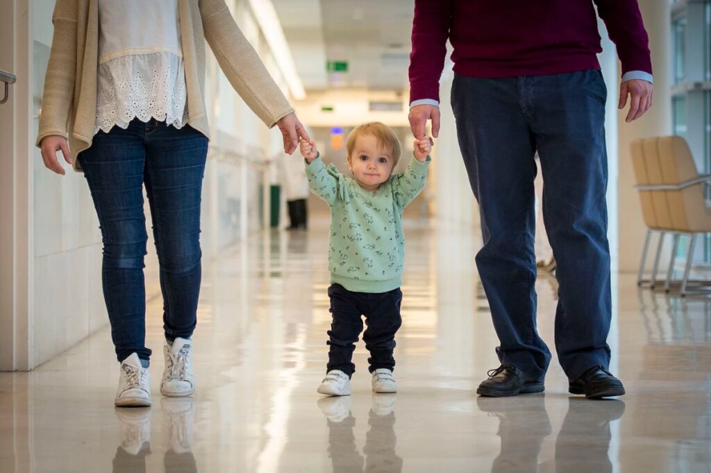 Y en medio de aquellos días, en los que Juan y María solo adivinaban los ojos de Irene en medio de vías y tubos y en los que hacían malabares para trabajar y quedarse en casa con sus otros dos hijos —Gonzalo, de seis años, y Martina, con cuatro—, llegó la propuesta de incluir a la bebé en el ensayo. “Nos sentaron en ese sofá”, explica Juan señalando el mueble blanco al otro lado de la habitación: “Nos contaron todo, cómo era el estudio, que era algo que nunca se había hecho, y nos dieron un rato para pensarlo. No nos hizo falta. Después de todo lo que pasó esos días y sabiendo que el trasplante no es para toda la vida, te viene alguien y te dice que un nuevo tratamiento podría conseguir que dure para siempre, ¿y cómo le vas a decir que no? Dijimos que sí. No teníamos nada que perder”.