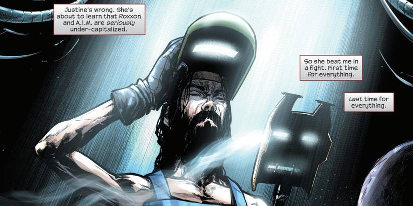En Hombre de Hierro #1 por Spencer Ackerman y Julis Ohta, Iron Man está luchando enormemente. Después de que su traje cae inexplicablemente del cielo, Stark soporta una estadía prolongada en el hospital con bastante rehabilitación, solo para descubrir que su compañía se enfrenta a una compra importante que su nueva junta no puede rechazar, a pesar de que proviene de un Fusión conjunta entre AIM y Roxxon. No solo eso, sino que también están trabajando con Justine Hammer, quien ha cooptado por completo todas las armaduras de Starks, incluida su armadura Mysterium antimágica que desde entonces incorporó a su nuevo robot Iron Monger: