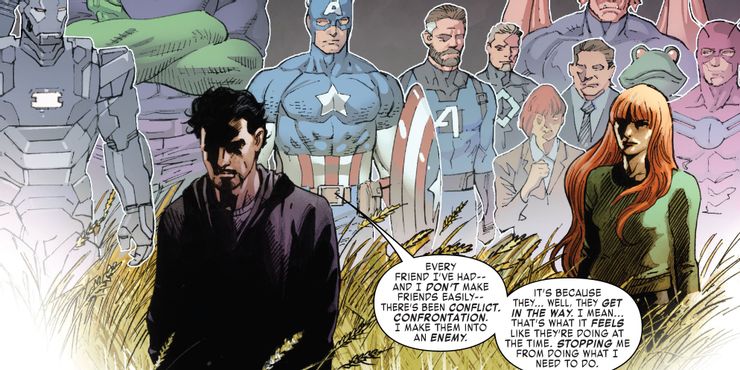 Una historia conocida por matar al Capitán América, desenmascarar a Spider-Man y, finalmente, obligar a la comunidad de superhéroes a golpearse unos a otros en el acto, a Iron Man se le ocurrió la idea de registrar a los superhéroes en Guerra civil para que el mundo pudiera sentirse más seguro acerca de sus acciones cada vez más peligrosas no era necesariamente una mala idea (aunque era cuestionable), solo uno que Tony trató de lograr de una manera completamente equivocada. Al igual que su personaje actual de Dios de Hierro y los objetivos que se propone en estos últimos números, Tony se pierde en su visión de cómo debería ser el mundo y la comunidad de superhéroes, ya que no tiene reparos en dañar y encarcelar a sus amigos para conseguir lo que desea. el quiere. Y aunque en ambos casos está cegado por su arrogancia, podría decirse que sus motivos iniciales son sólidos antes de verse empañados por las tácticas cuestionables de Tony para lograrlos.