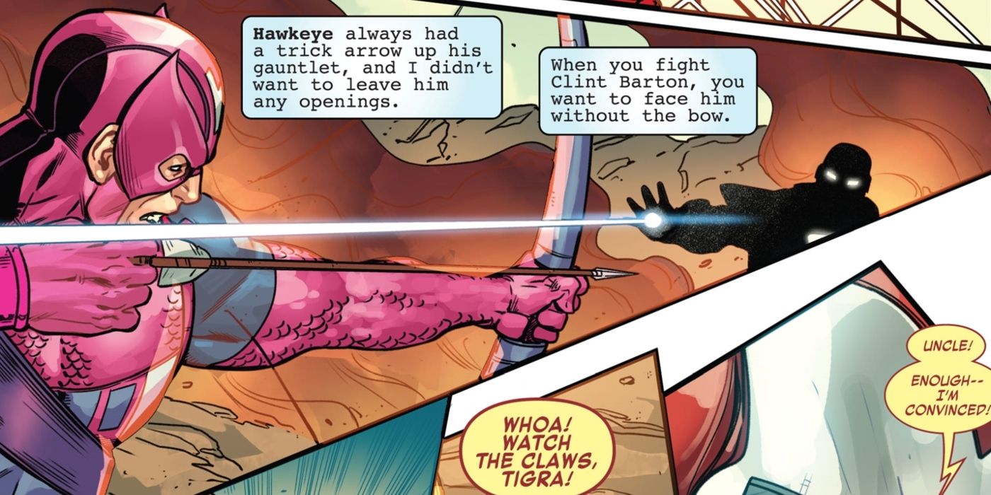 Es un inmenso cumplido que alguien como Iron Man tema por su vida al enfrentarse a Hawkeye. Iron Man tiene una armadura que puede reventar a Hulk, empuñar las piedras infinitas e incluso matar dioses, pero Hawkeye con sus flechas engañosas es una preocupación muy real para él en la batalla, y no se equivoca al pensar de esta manera. Hawkeye ha demostrado una y otra vez que no hay nada que no pueda golpear con sus flechas, por lo que si está usando flechas con truco, entonces tiene el potencial de lanzar cargas explosivas e inesperadas que le dan a Iron Man una ventaja cero en la batalla.