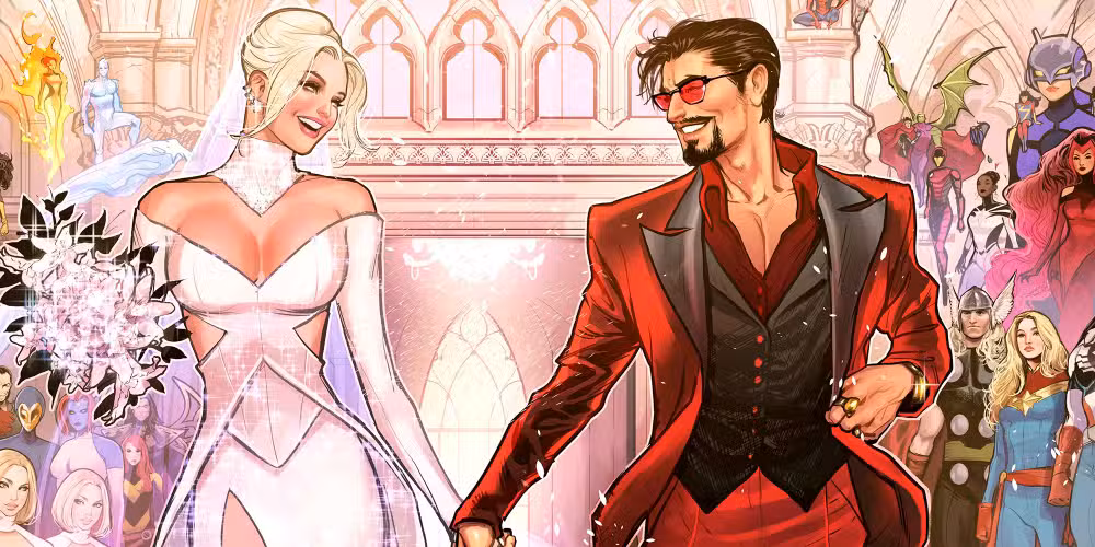 La relación de Iron Man y Emma Frost es una lote mayor de lo que la mayoría de la gente cree. Se hizo referencia por primera vez en 2006. Guerra civil #3cuando Tony mencionó casualmente su historia de encuentros sin compromiso durante la era más villana de Emma. En 2019, Historia del Universo Marvel #6 establecido “la boda de Tony Stark y Emma Frost” como un hecho histórico que aún no había ocurrido.