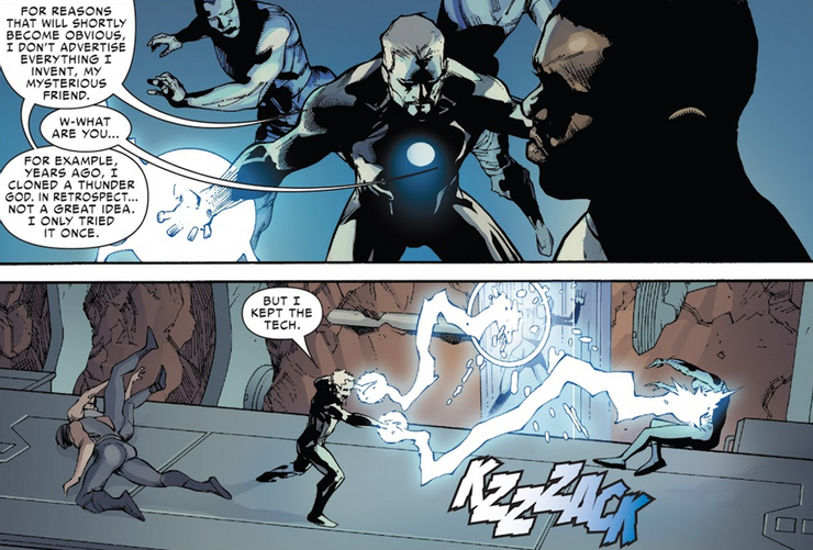 Sin embargo, después de Civil War, Tony continuó usando su armadura familiar, y un antiguo aliado sugirió que su vergüenza por la muerte del Capitán América lo llevó a ocultar su rostro siempre que fuera posible. Este traje alternativo parece confirmar esa teoría, revelando que si Tony se hubiera visto obligado a llegar a un punto muerto, habría sido mucho más fiel a sus ideales. Esta versión de Tony solo puede encontrar cierto sentido de unidad con el Capitán América después de que los dos descubren que su enemistad ha sido creada por los Skrulls, lo que lleva a un plan que vuelve a unir a la nación fracturada.