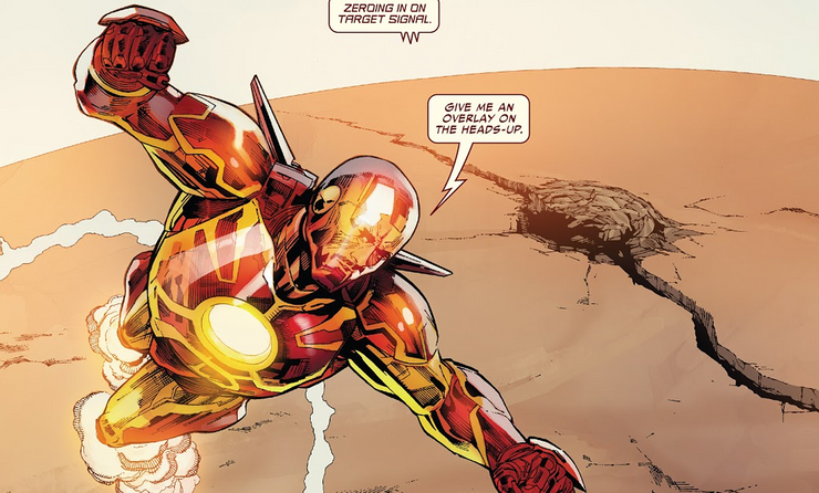 Seis años después de la batalla culminante, los dos héroes inician conversaciones de paz, pero las cosas han cambiado drásticamente. El Capitán América dirige el Azul, una nación no reconocida fundada en la libertad radical, mientras que Iron Man preside el Iron ultra-regmentado. Tener una nación entera para él está de acuerdo con Tony, quien ha construido una “utopía” tecnológica y cuenta con uno de sus trajes más poderosos. Convirtiendo sus habilidades habituales en 11 y al mismo tiempo permitiéndole operar unidades de drones, el traje modular se complementa con la tecnología que Tony usó para crear Guerra civilEl clon cyborg de Thor, que le permite descargar un rayo y golpear con una fuerza divina. Sin embargo, el detalle que lo convierte en el traje perfecto para esta línea de tiempo alternativa es que la placa frontal de Tony es transparente. Habiendo luchado y perdido por el ideal de los héroes responsables, Tony se mantiene fiel a sus principios, encontrando una manera de evitar usar una máscara incluso cuando está completamente equipado.