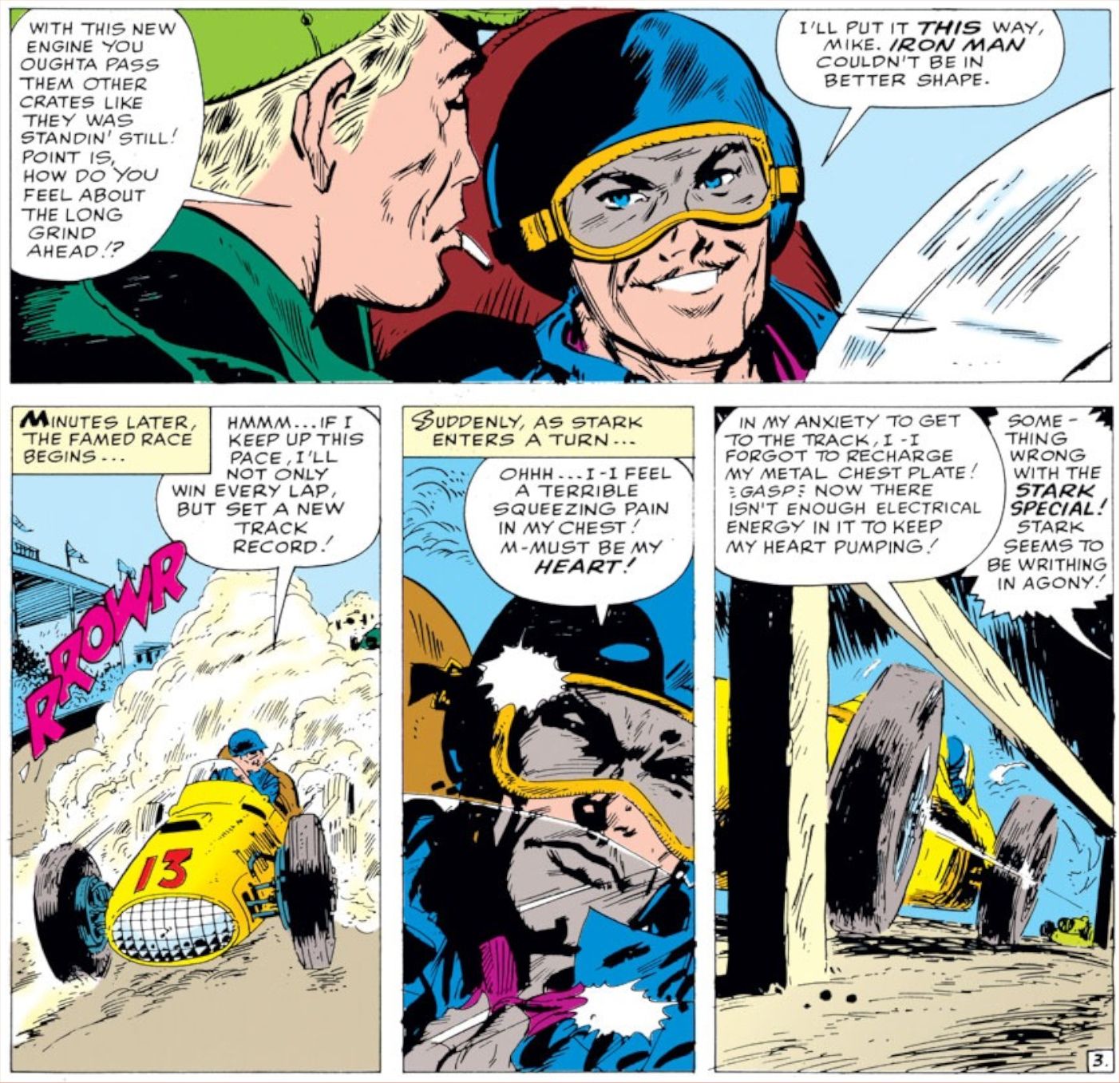 La mayoría de los fanáticos probablemente recordarán la escena de los autos de carrera en El Hombre de Hierro 2: Tony Stark entra en el Gran Premio de Mónaco por capricho. Pero la historia de los autos de carreras de Stark es aún más profunda que eso, y se remonta a sus primeras apariciones. cuentos de suspenso # 45 de Stan Lee, Robert Bernstein, Don Heck y Sam Rosen presenta a Tony Stark compitiendo en una carrera benéfica. Él ha llamado a su auto de carrera mejorado “el especial Stark.Todo está bien y elegante, hasta que Stark comienza a sentir un dolor en el pecho. Se da cuenta demasiado tarde de que no ha recargado su placa de cofre magnético (el precursor del reactor de arco que usa en la MCU), lo que finalmente hace que se salga de la pista y se estrelle en una bola de fuego. Ahora, los lazos de cosplay de Ella787 en esta pieza crucial de la tradición de Iron Man.
