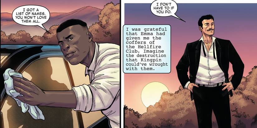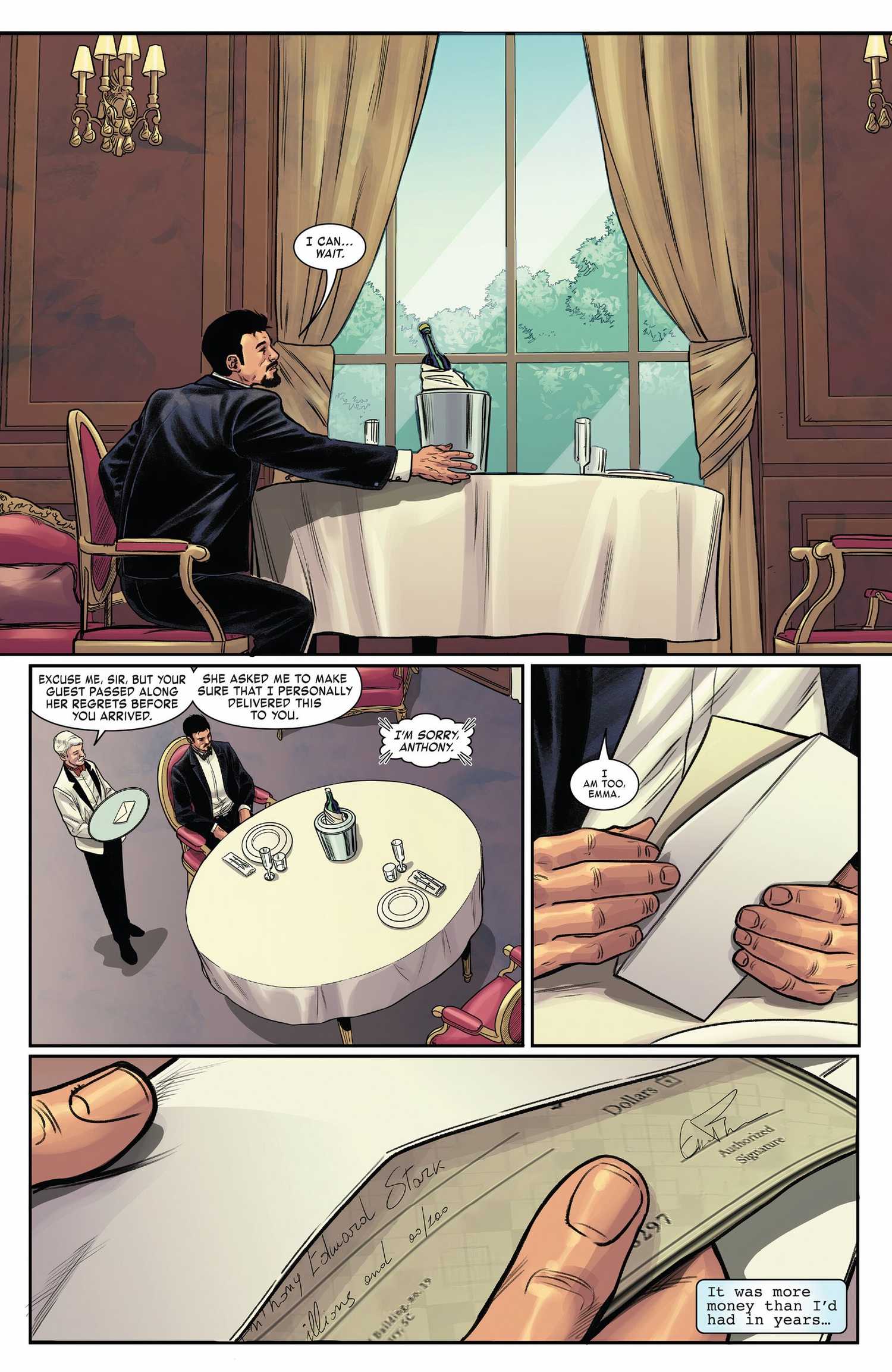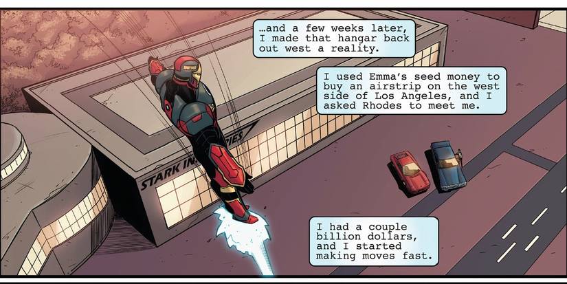 Admitiendo que es “más dinero del que había tenido en años”, Tony lleva sus “dos mil millones de dólares” al oeste y se burla de una posible reunión de los Vengadores de la Costa Oestedejando en claro que este es un nuevo comienzo no solo como Vengador sino también como persona. Sin embargo, la parte que hace que el estado financiero rejuvenecido de Tony sea tan perfecto no es el dinero en sí, sino de dónde lo obtuvo Emma. Al revelar que Emma “usó sus poderes mentales e hizo que el mercado trabajara para ella”, Emma falsificó transacciones y robó cuentas para robar efectivo de varios malhechores, incluidos Roxxon, Tombstone e incluso Doctor Doom.