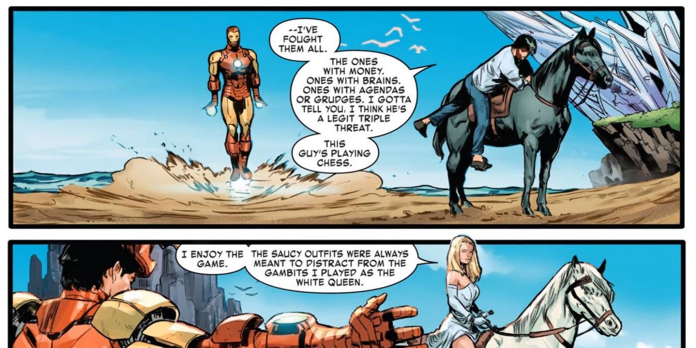 A pesar de todo su heroísmo, Iron Man es un egoísta, por lo que no sorprende que describa a aquellos con los que lucha como extensiones de su propia personalidad. Sin embargo, en Fei Long, Hombre de Acero Realmente ha encontrado al malvado Tony Stark, y su discusión con Emma Frost demuestra que él lo sabe.