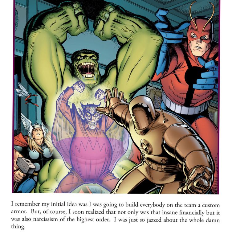 Si bien el entusiasmo (y la riqueza) de Iron Man es probablemente lo que mantuvo unidos a los Vengadores, como su provisión de la Mansión de los Vengadores como base de operaciones, el primer capítulo de la historia oral revela que los planes de Iron Man eran originalmente mucho más elevados que solo ser el principal financista del equipo. Como Stark admite libremente, su entusiasmo lo motivó a idear planes para crear conjuntos personalizados de armaduras para cada miembro del equipo. Sin embargo, pronto se dio cuenta de que el alto costo no valdría la pena lo que habría sido su narcisismo de libro de texto a todo trapo.