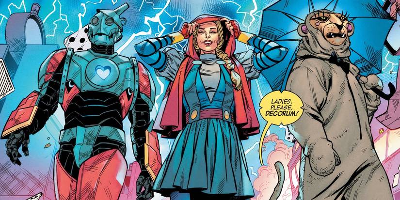 Advertencia: contiene spoilers de Vengadores #22El icónico mago de oz ha llegado a Marvel Comics, como el trabajador hombre de hierro rinde homenaje a Malvado en las paginas de Vengadores #22. Para irrumpir en una bóveda altamente custodiada dentro del casino galáctico Speculatorium, en busca de una respuesta al misterioso Momento Perdido, Iron Man, el Capitán Marvel y el Capitán América se ponen ridículos. Onz-disfraces inspirados, con Iron Man perfectamente escondido como el Hombre de Hojalata.
