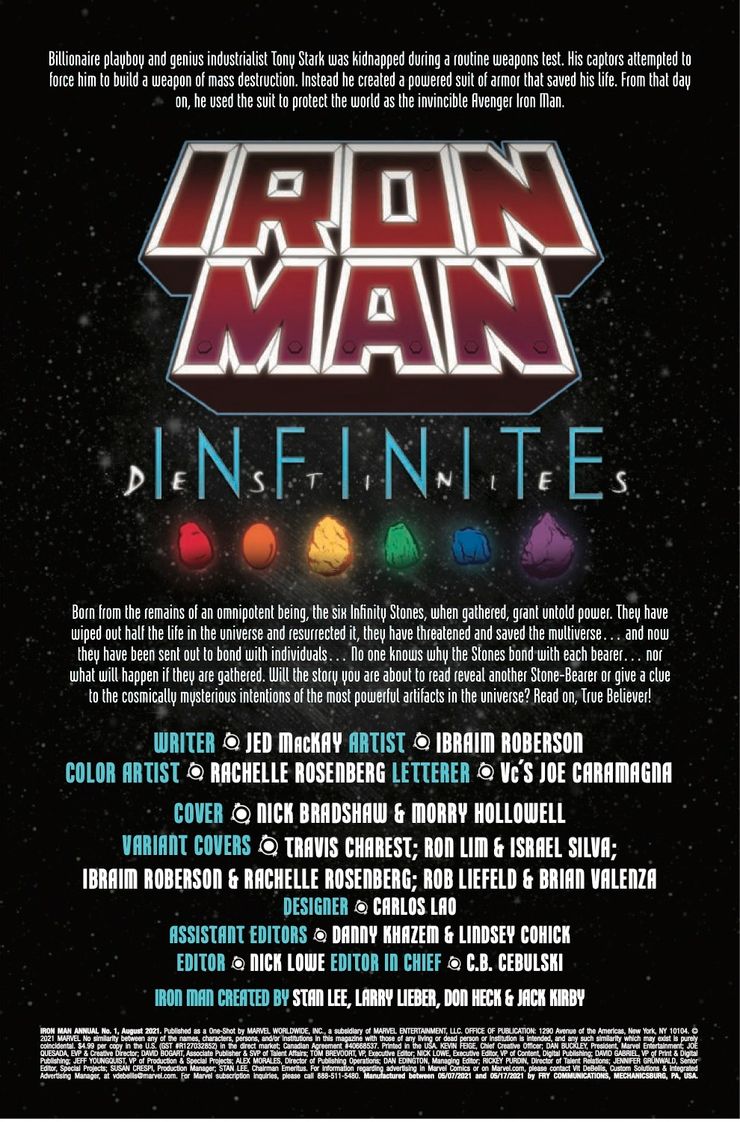 Esta revelación proviene de una vista previa de la próxima película de Marvel. Destinos infinitos evento, que se llevará a cabo en los diversos títulos anuales de Marvel, como Iron Man Anual # 1 del escritor Jed MacKay y el artista Ibraim Roberson. A lo largo del evento, diferentes héroes interactuarán con los diversos héroes y villanos que fueron elegidos para albergar a las nuevas Infinity Stones, a quienes se les dio libre albedrío para trazar sus propios cursos gracias a Adam Warlock al final de Marvel’s. Guerras infinitas. Por ejemplo, Spider-Man interactuará con Star (que obtuvo sus poderes de Reality Stone), mientras que el Capitán América se ocupará de las horas extraordinarias (Time Stone) en sus respectivos números anuales.