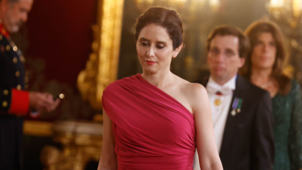 Ha resultado realmente sorprendente que Díaz Ayuso escogiera un vestido ceñido para un acto de gala de tal calibre, pero lo cierto es que el armario de la presidenta ha ido evolucionando con el paso de los años y desde que cogió el mando de la Comunidad de Madrid. Teniendo en cuenta que en un primer momento solía sentirse más cómoda con faldas de vuelo, ha llamado la atención que ahora sean más los momentos en los que se la ve con vestidos de falda de tubo e incluso transparencias, llegando a coronarse incluso como una it girl dentro de nuestras fronteras y habiendo sido una de las grandes competencias estilísticas de doña Letizia durante la pasada noche del día 17 de mayo. Para poner el broche de oro a su elección, Isabel se apoyó en un bolso de mano plateado, unos zapatos a tono y un recogido de altura media con una ligera raya lateral y un detalle de trenza. Para dar el máximo protagonismo al vestido, la presidenta escogió unos pendientes apenas perceptibles a la vista.