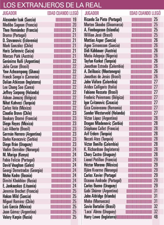 La lista de fichajes foráneos en la Real ronda los 80 casos, contando a los vestigios de mediados de Siglo XX. En la era contemporánea, aquella en que se ven los partidos en color, el pionero es John