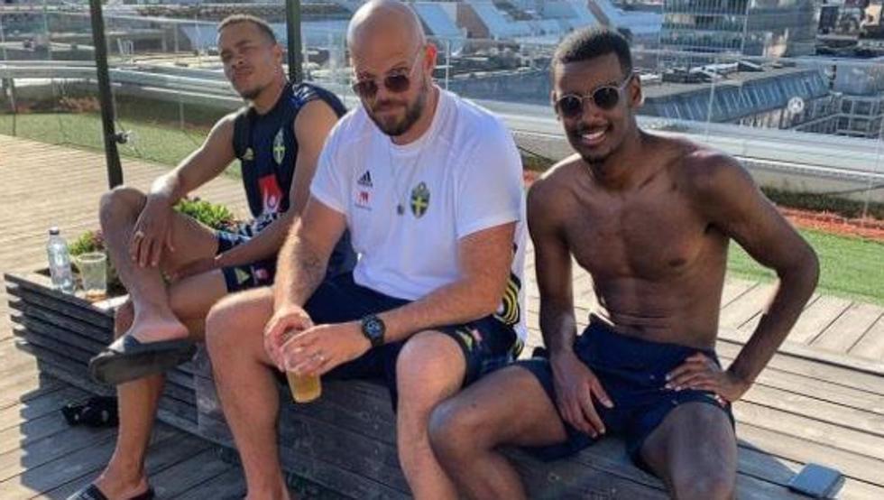 Quaison bebiendo cerveza en la terraza de la azotea del hotel donde se hospedaban en Estocolmo. El problema es que según las normas de la Federación Sueca de Fútbol ningún integrante del combinado puede beber alcohol con la ropa de la selección, lo que ha llevado al secretario general de la Federación, Håkan