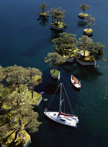 Islas flotantes diseñadas por Studio Fokstrot y Marshall Blecher. Render cortesía de Marshall Blecher