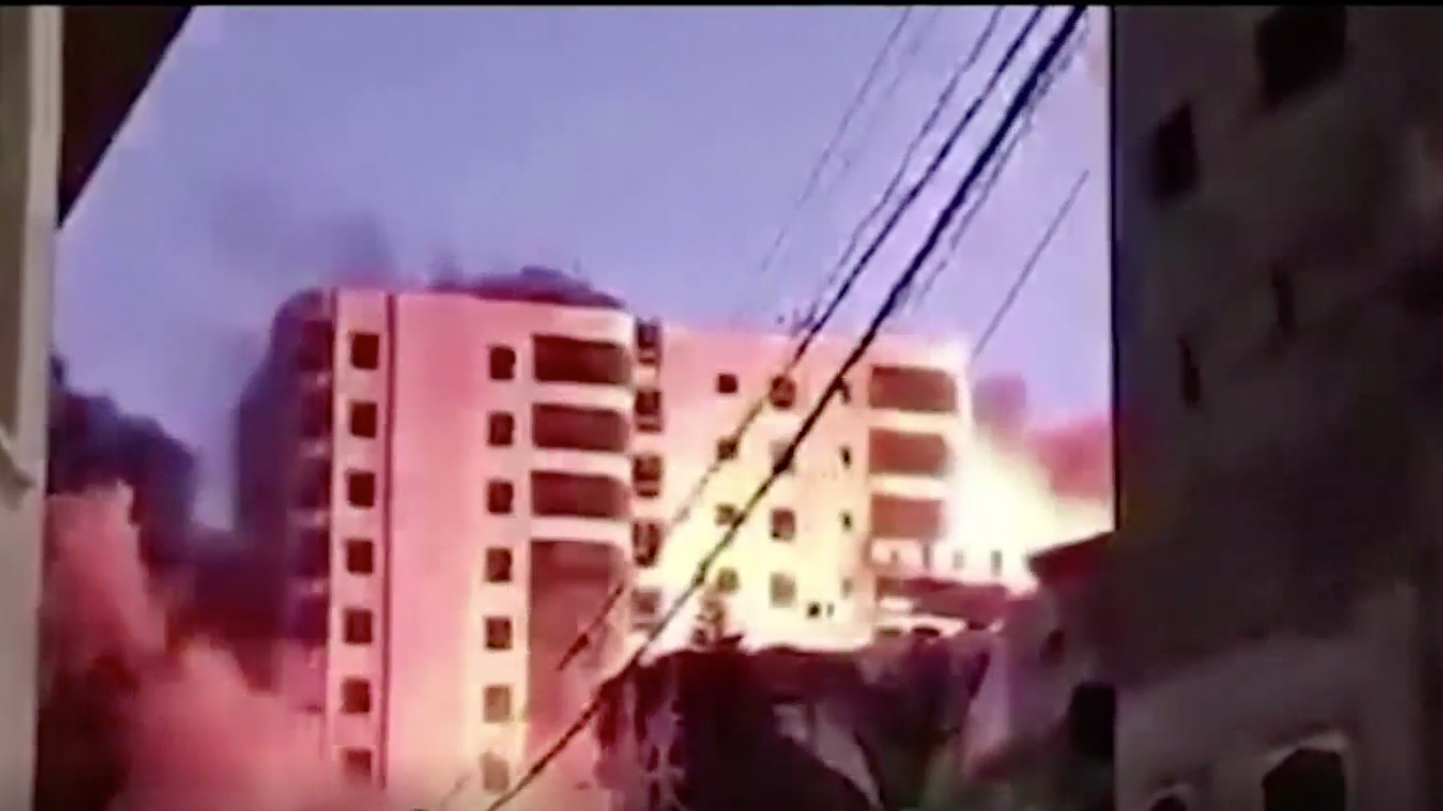 Los aviones de combate atacaron el edificio después de que periodistas y socorristas se habían reunido alrededor. No se supo de momento si hubo víctimas. La torre se ubicaba a 650 pies de la oficina de The Associated Press en la Ciudad de Gaza, y el humo y los escombros llegaron hasta la oficina.