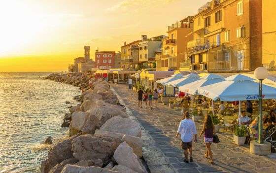 ¿Venecia en Eslovenia? Así es. Y a menos de 50 kilometros de Trieste, en el reducido tramo costero (46 kilómetros) por el que este pequeño país balcánico se asoma al mar. El bullicioso imperio comercial veneciano dejó su impronta en toda la costa adriática y Eslovenia tuvo la suerte de quedarse con el puerto medieval mejor conservado, fuera de Venecia. Aunque en Piran la concentración de turistas es casi como en Venecia, su bello entorno es un placer constante. Podremos comer marisco fresco en el puerto, perdernos por estrechas calles y culminar el paseo en su espléndida Plaza Tartini, donde tomar unas copas y observar a la gente.
