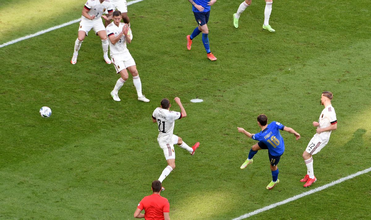A Bélgica le sobran mimbres y categoría para zafarse de la presión, pero le acompaña un aire melancólico. Además en esta cita le abandonaron la fortuna y la puntería. Hasta tres veces remató al palo. Saelemaekers, Batshuayi y Carrasco los cataron. Tuvo más ocasiones que fútbol el equipo belga, también tuvo orgullo para no dejarse llevar. Pero ganó Italia, más concreta. Pudo marcar en la última acción de la primera parte, pero Courtois frustró a Chiesa en el mano a mano. El gol le llegó en la primera acometida tras la reanudación, un remate desde la frontal de Barella tras un saque de esquina, una desatención defensiva al cerrar posiciones de rechace.