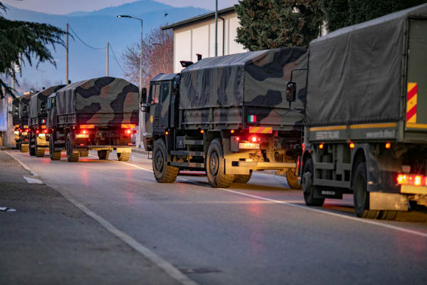 Camiones de la fuerza militar italiana trasladando los cuerpos de víctimas por la pandemia del Covid-19.