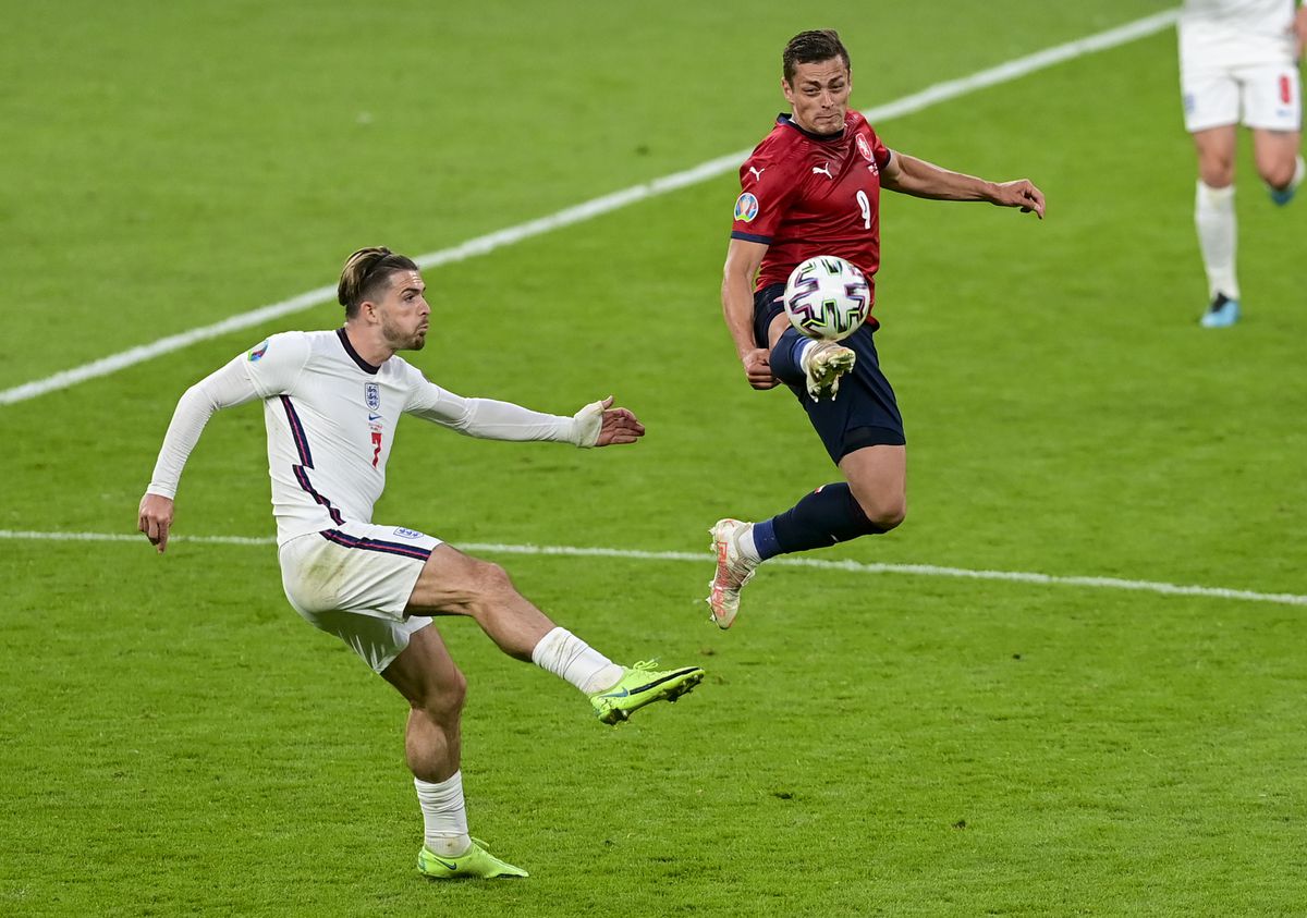 De esos choques emerge un futbolista extraño si se le compara con las balas que lo siguen en el ranking de más golpeados, Zaha (88), Traoré (86) y Mané (76), en el último curso. Grealish no puede ser más distinto una vez sale repelido del choque: una especie de bailarín que controla la pelota como si la acariciara, con un repertorio que evoca a Zidane, y que después es capaz de detener el tiempo a lo Butragueño, en ese parpadeo en que se disponía a dar una dentellada. Para los defensas resulta desconcertante. Para el hincha, la inminencia perpetua de un instante feliz. El martes contra la República Checa, por fin titular, de nuevo fue el que más faltas recibió de Inglaterra, tres según Opta, y también el asistente del gol de Sterling, en cuya cabeza puso un balón que parecía flotar.