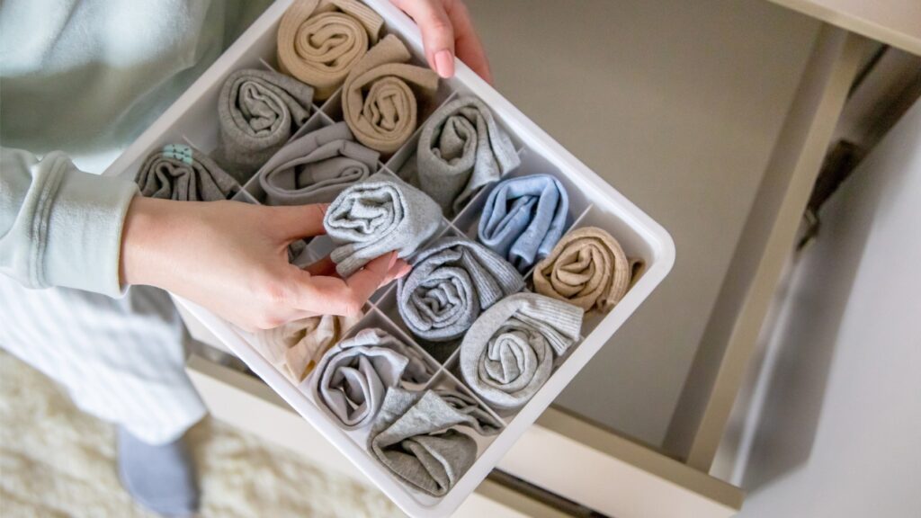 Una vez se seque, podemos colocar unos organizadores. Teniendo en cuenta que son piezas pequeñas, es fácil que con el paso de los días se amontonen y acabe todo revuelto. Para evitarlo, lo mejor es dividir el cajón por tipo de ropa y colocar varios organizadores en forma de cestas o cajas.