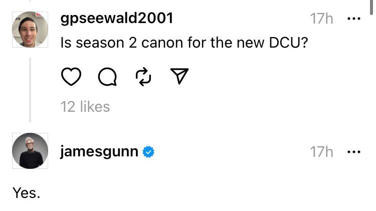 En Threads, Gunn reveló que Pacificador La temporada 2 se desarrollará en el nuevo Universo DC.