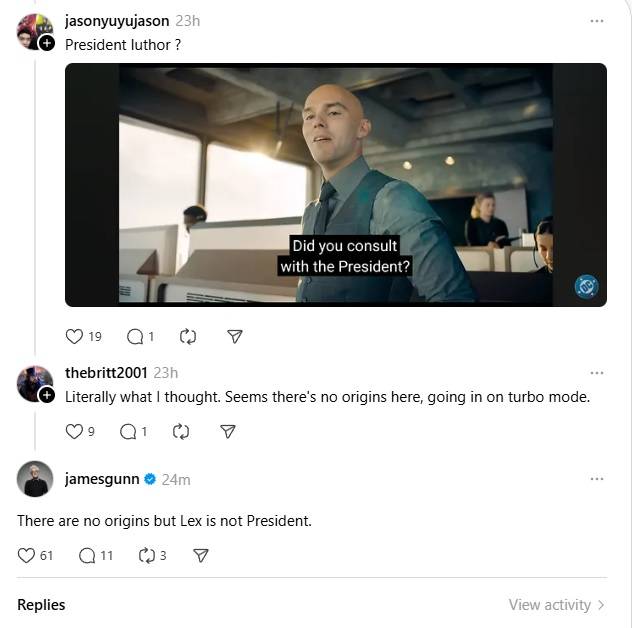 El comentario de Gunn también abordó el comentario del usuario sobre cómo “Parece que no hay orígenes aquí, entrando en modo turbo”, reafirmar que aunque Superhombre No contará la historia de origen de The Man of Steel, la película no está saltando tan lejos con personajes como Lex.