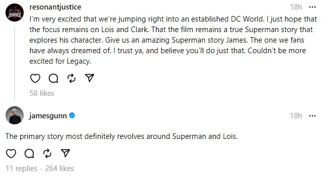 @ResonantJustice espera que “el enfoque permanece en Lois y Clark”, y Gunn le aseguró al fanático que no será un problema. Al final del día, “La historia principal definitivamente gira en torno a Superman y Lois”.