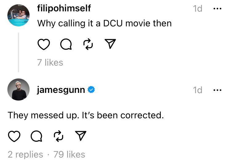Si bien no tendría mucho sentido que la película fuera parte del Universo DC, ya que la primera vez que aparezca la nueva Liga de la Justicia debería ser en acción real, la película se anunció bajo el lema “Universo DC”. Gunn aclaró la situación después de que un fan le preguntara y dijo: “Se equivocaron. ha sido corregido“.